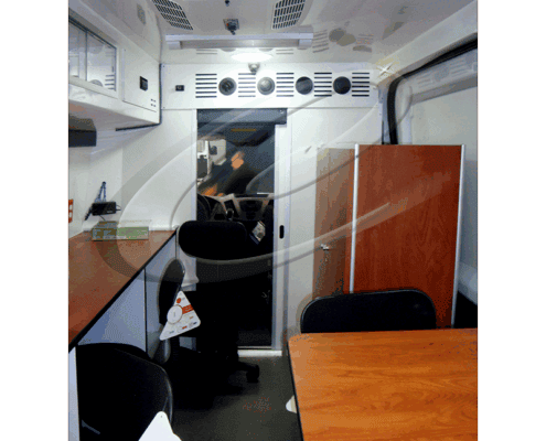 Los vehículos se transforman en oficinas móviles eficientes, ofreciendo cubículos funcionales y estaciones de trabajo equipadas con computadoras.