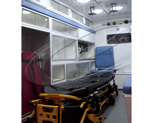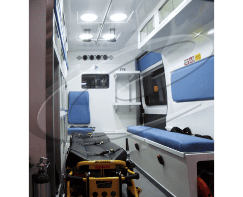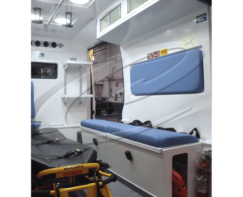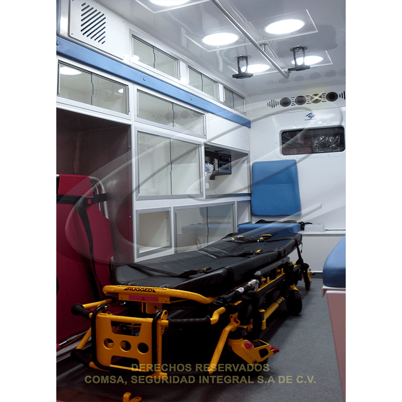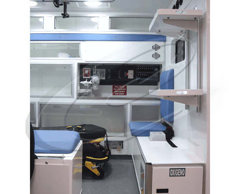 Asientos para el asistente medico: Para Chevrolet montados sobre estructura metálica y con opción para Transit, Sprinter y Ram Promaster, montado sobre el gabinete horizontal para el tanque de oxígeno tipo M.